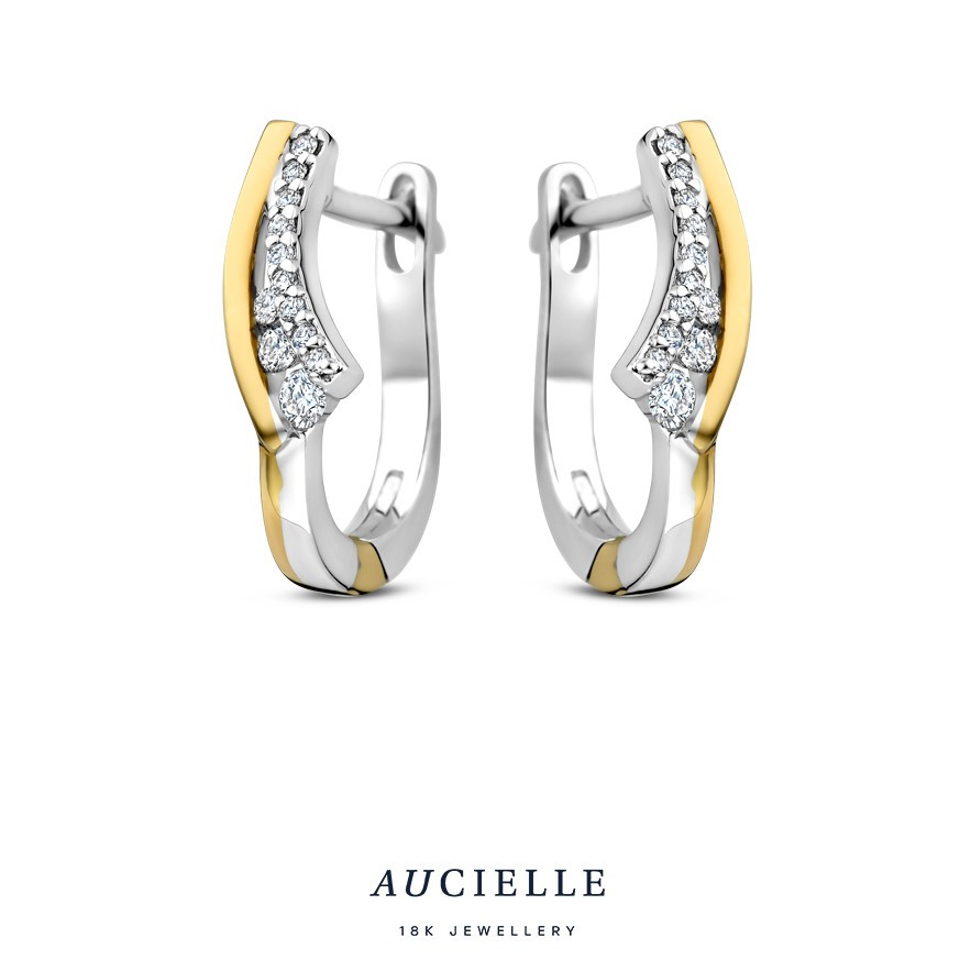 18 karaat by-color gouden creolen gezet met diamant.