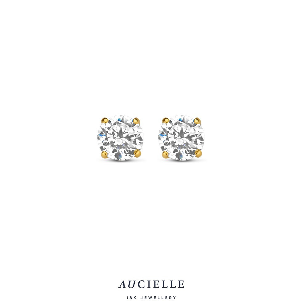 18 karaat geel gouden oorstekers gezet met zirconia.