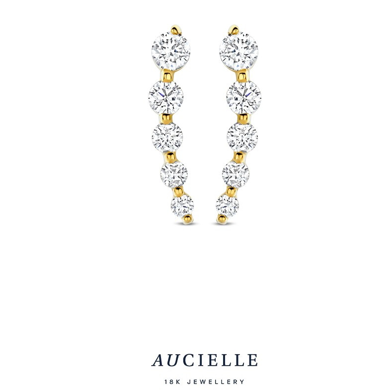 18 karaat geel gouden oorstekers gezet met zirconia.