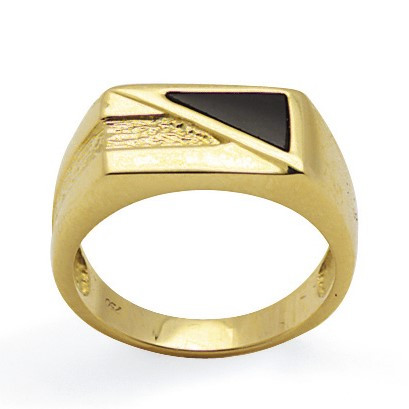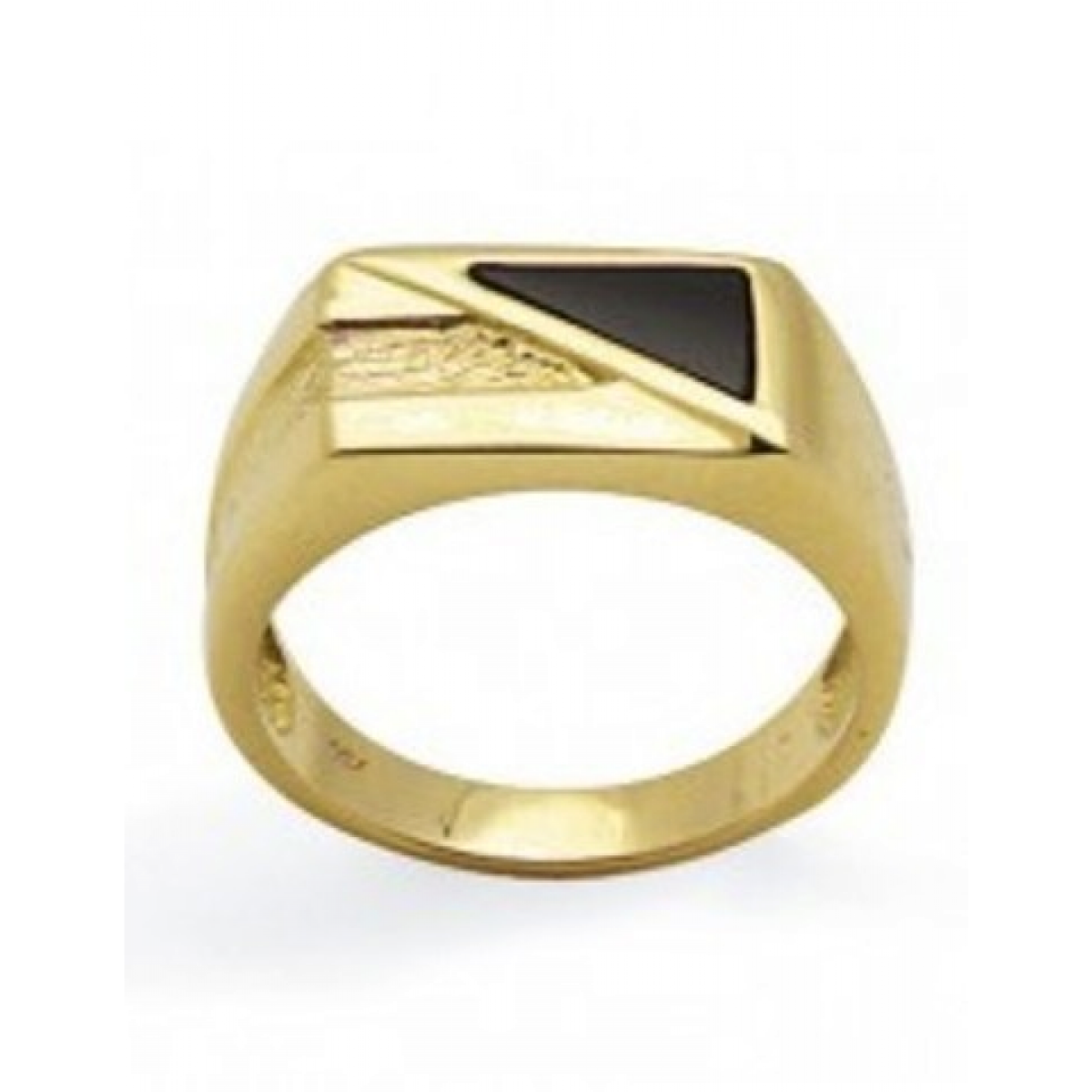 18 karaat geel gouden heren ring gezet met zwarte onyx steen